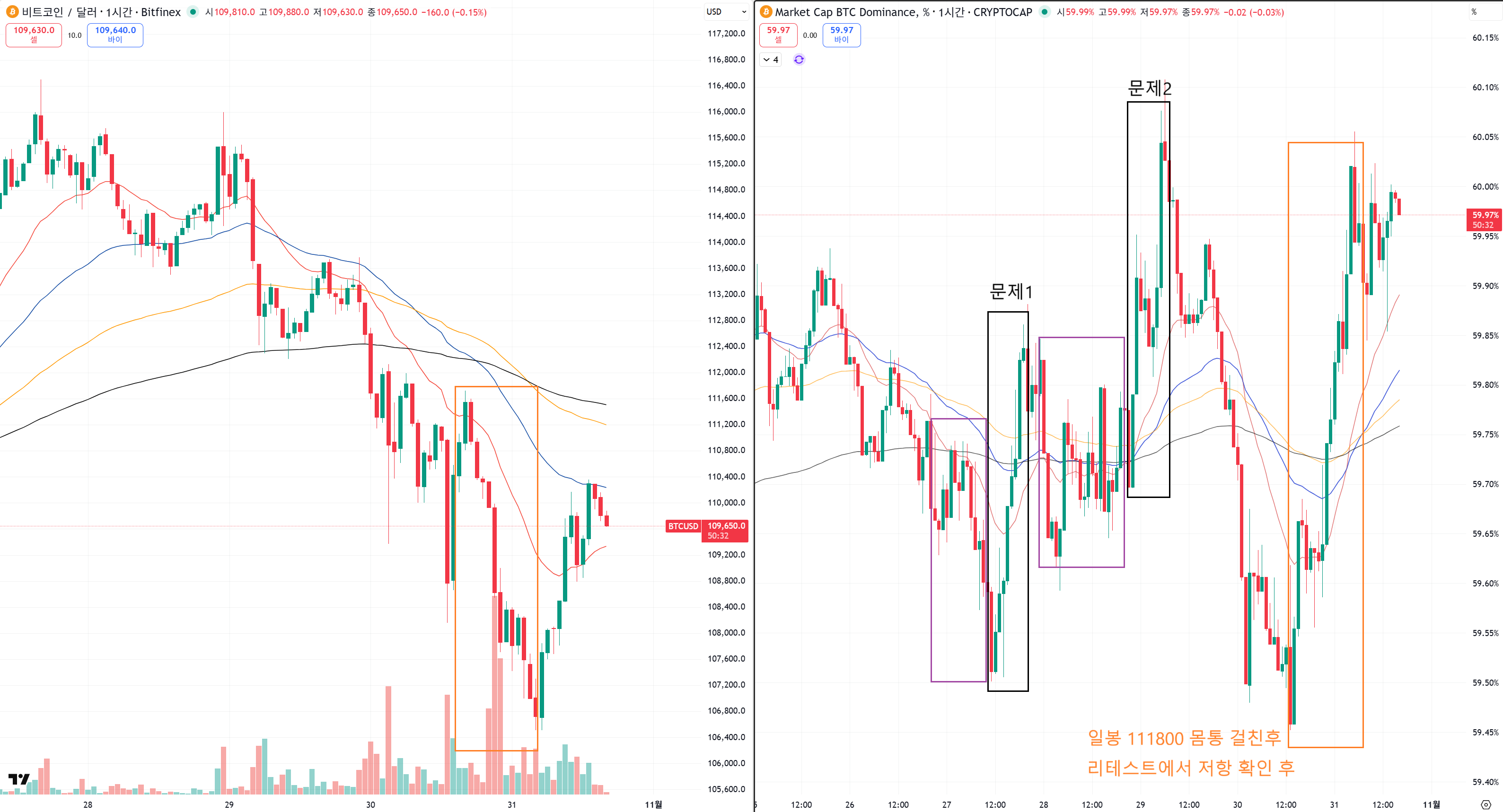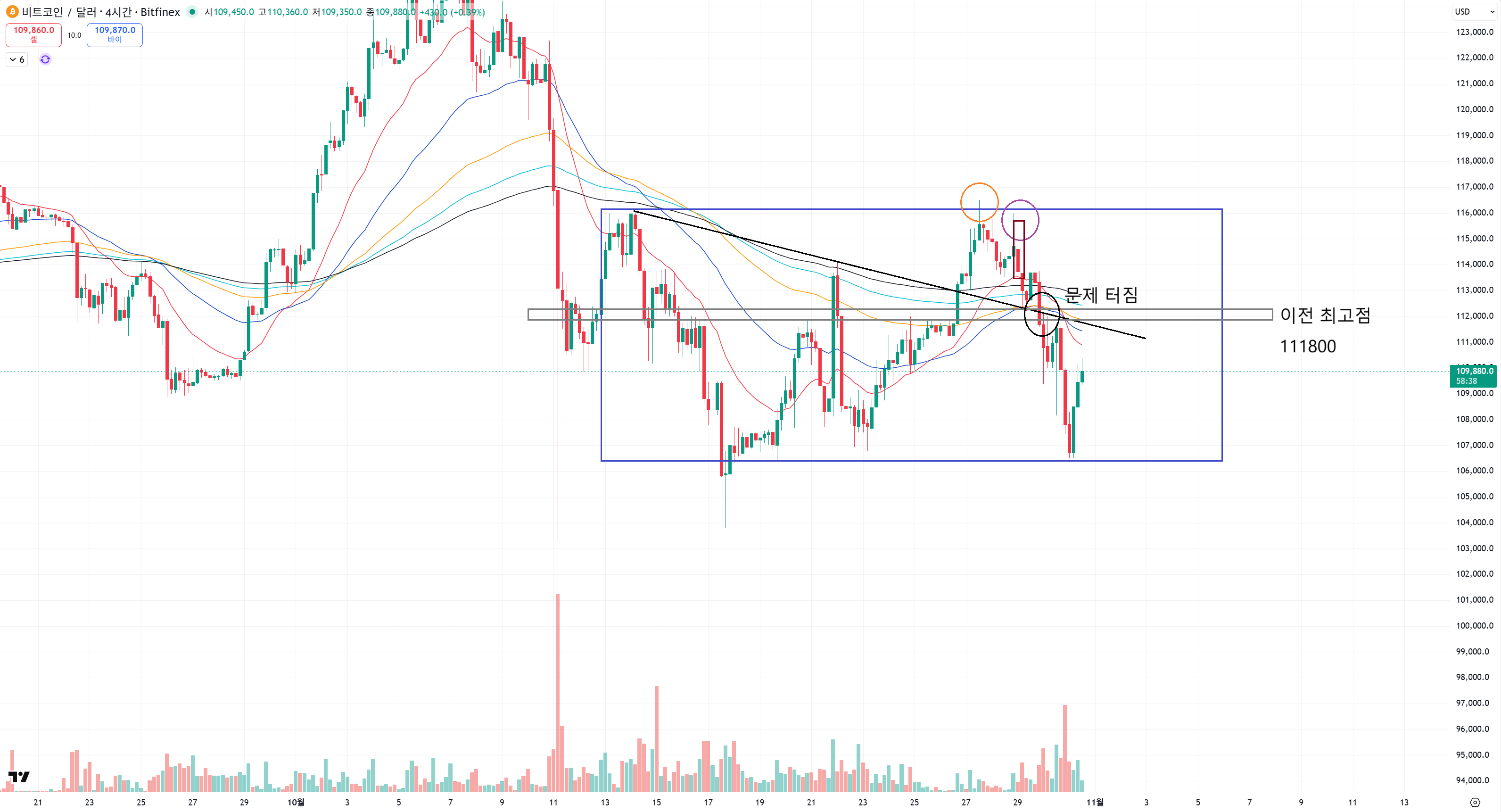 더 중요한건 111800 구간을 맥없이 무너뜨리고 저항까지 확인해서 추가적으로 완전 무너졌다는게 중요한데