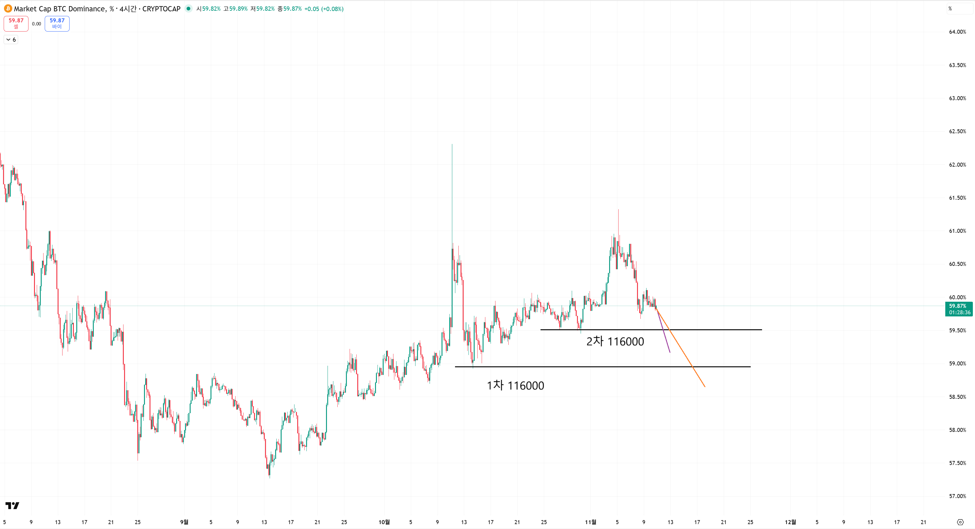 그럼에도 116000을 기준으로 도미넌스를 볼때