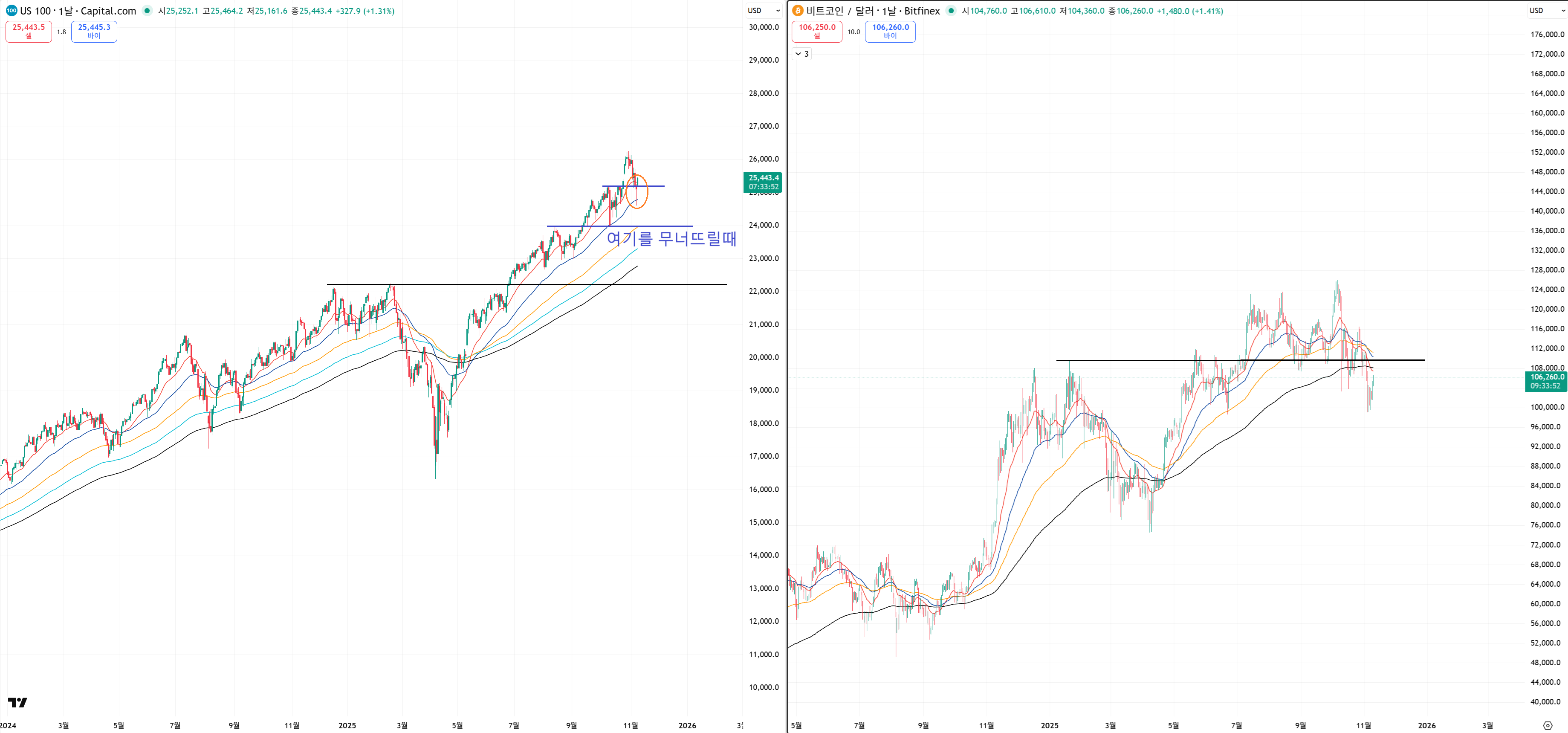 거기까지 한번에 무너뜨릴떄가 나스닥이 우웨웩 하는 모습인데