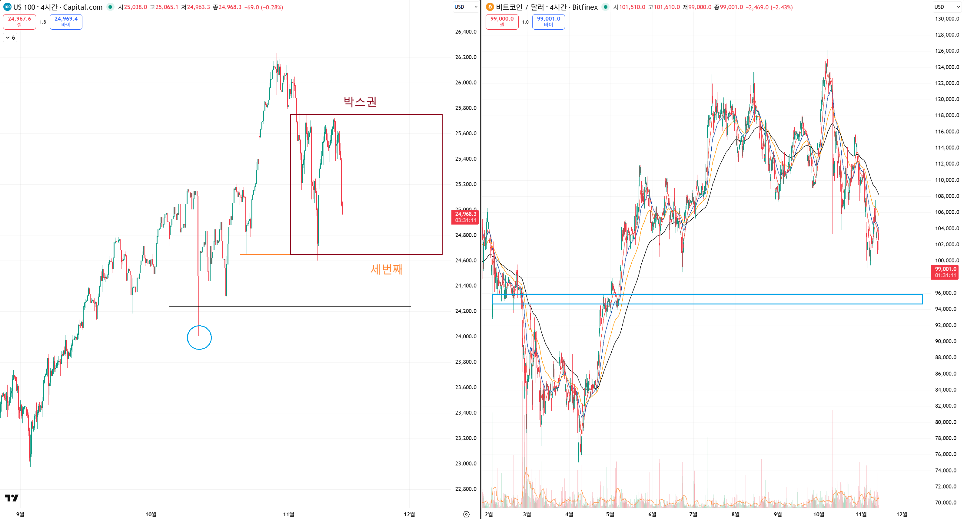 | 금융상품 3번째 도전. 나스닥 추세 판단 주요 지점에서 비트코인 위치. (0) | 2025.11.26 |