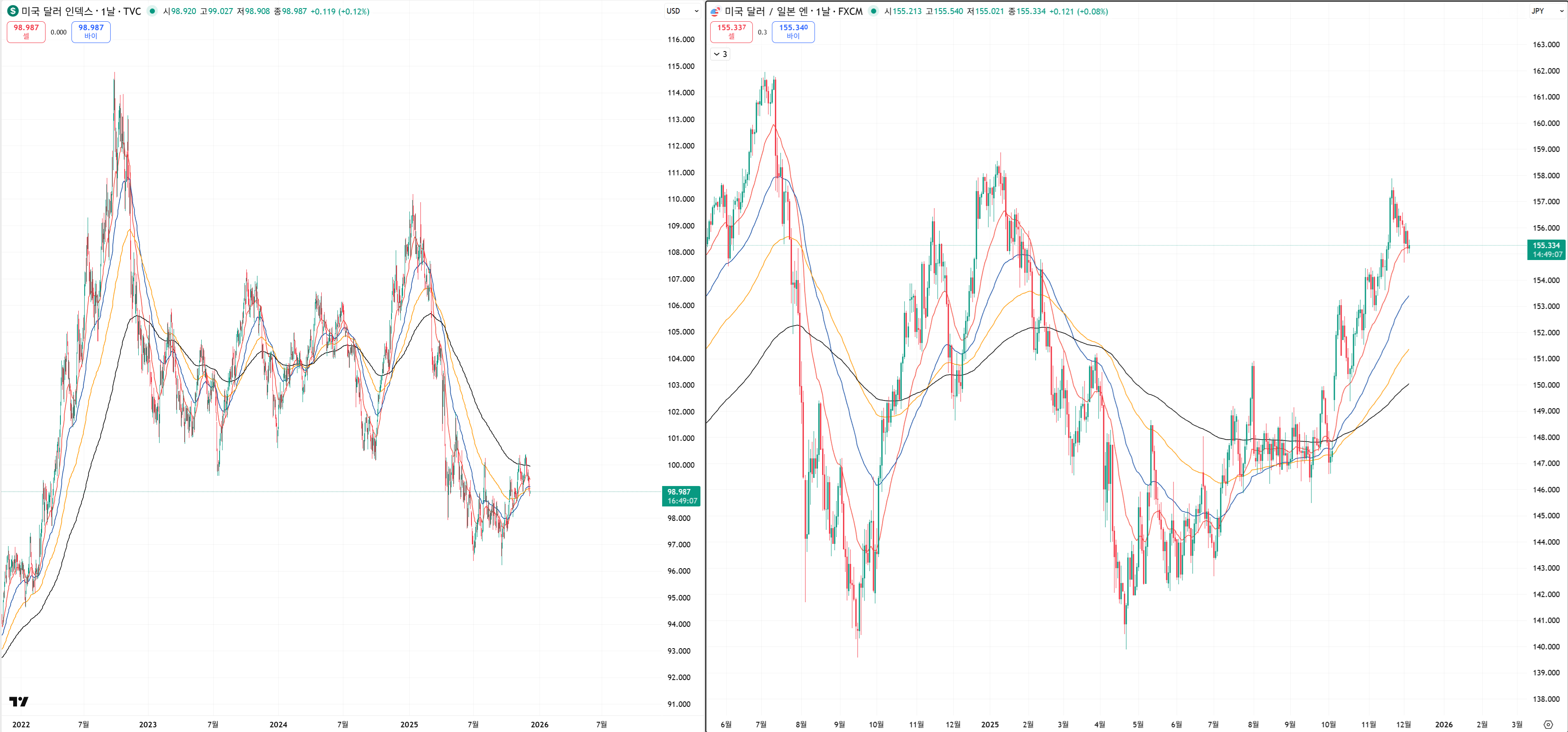 달라인덱스가 이전 바닥원인 100.36을 넘어가면서 달라엔은 가만히 있는 최악만 피하면 됩니다.