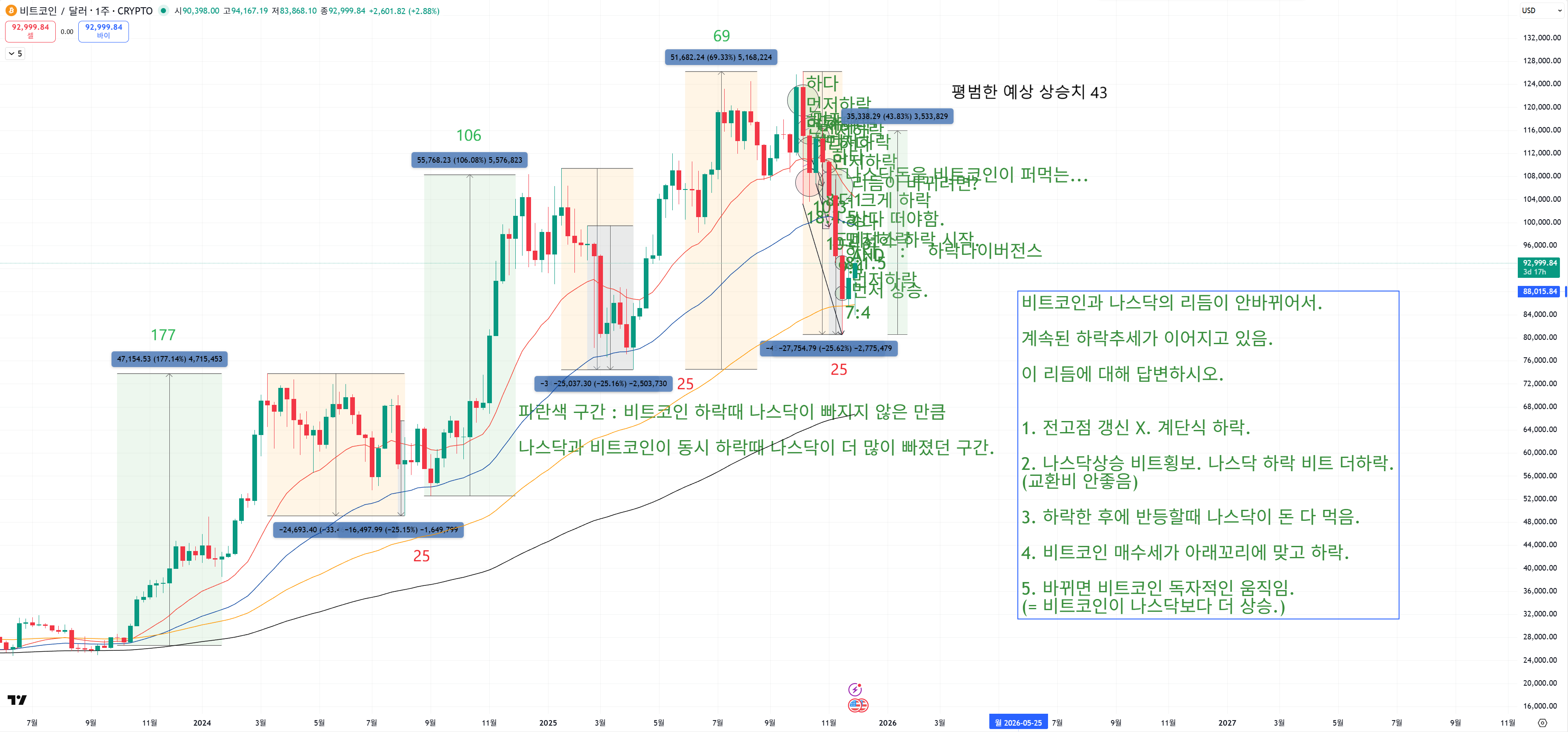 | 금융상품 3번째 도전. 나스닥 추세 판단 주요 지점에서 비트코인 위치. (0) | 2025.11.26 |