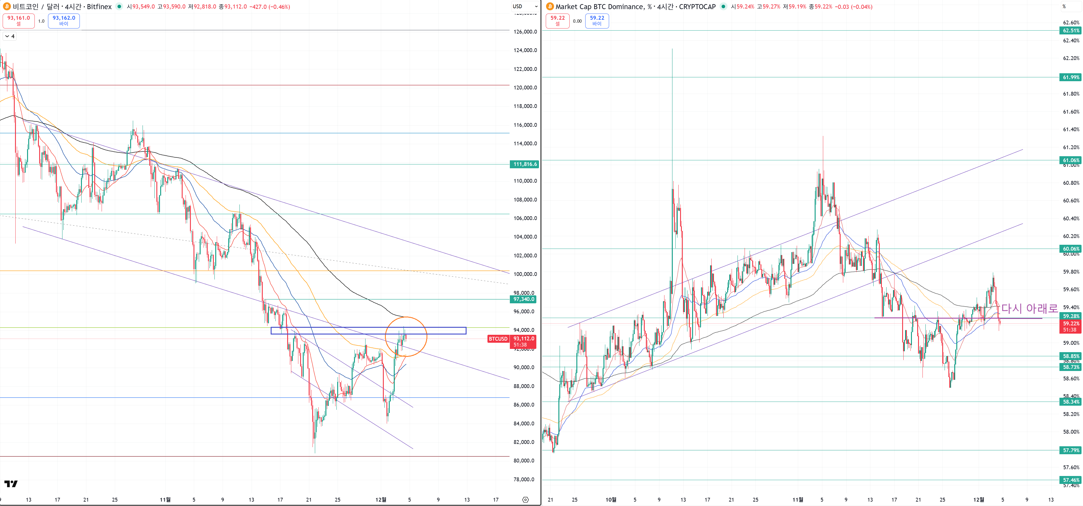 왼쪽 비트코인 차트 보면 지금 위치는 꼬리 저항과도 겹치기에