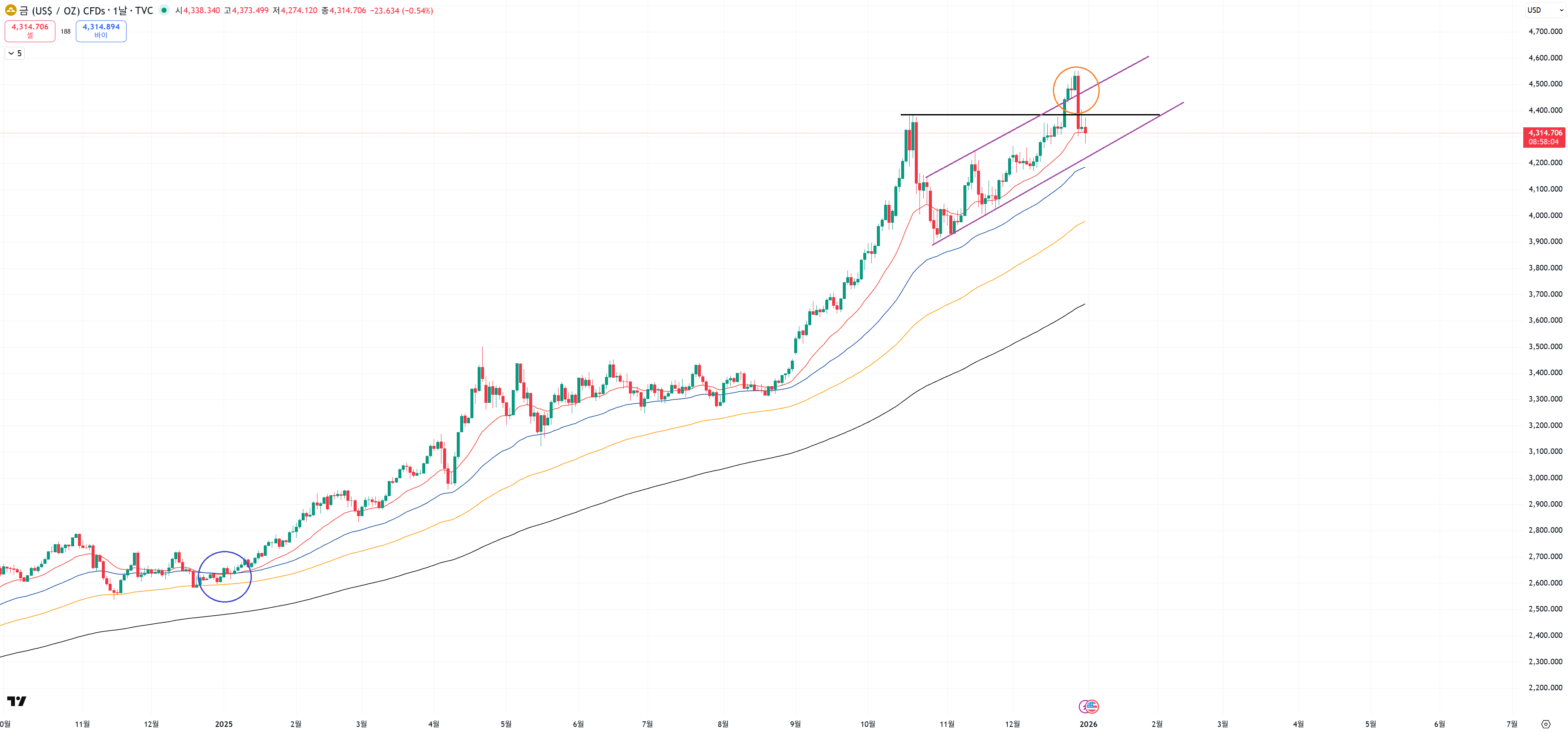 2025년 중 유일하게 매수세가 꺽일 수 있는 모습이 12월 30일에 나왔습니다.