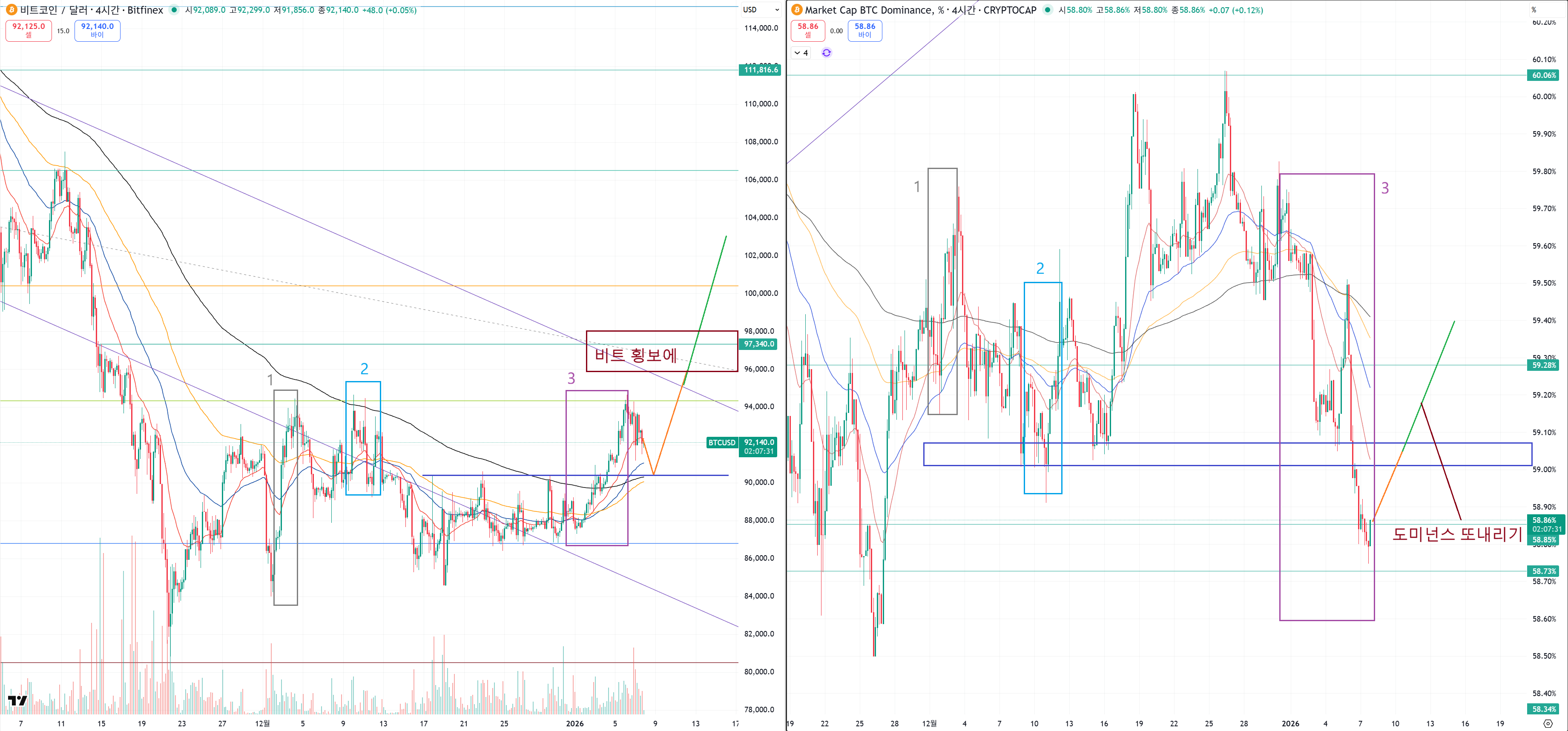 비트코인 지지구간까지 조정이 온다음에도 도미넌스는 계속 하락하려고 하는지