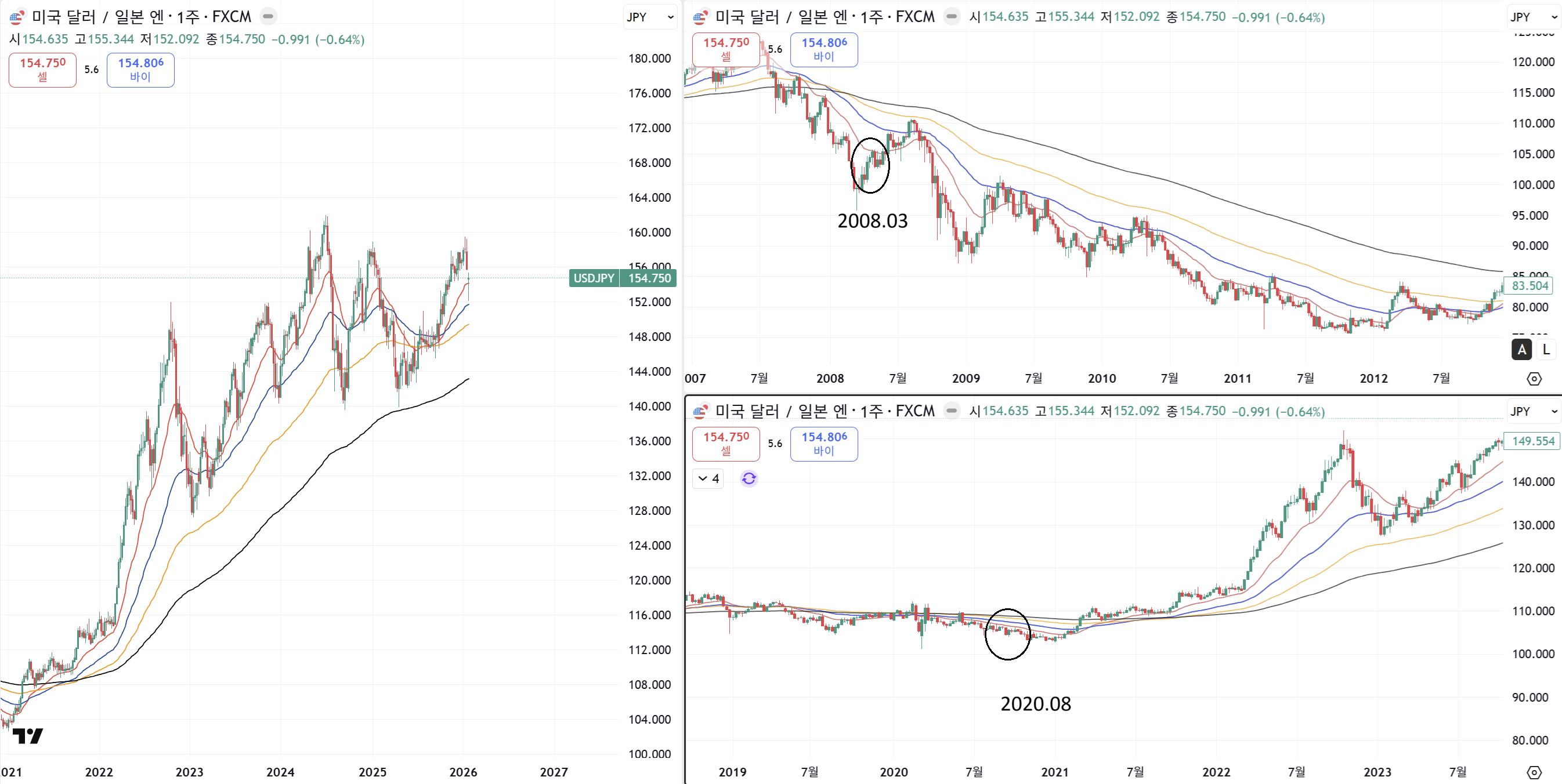 어쨌든 엔화의 변동성이 커서 화폐가 불안정했다는 점은 지금와 2008년의 유사성을 보입니다.