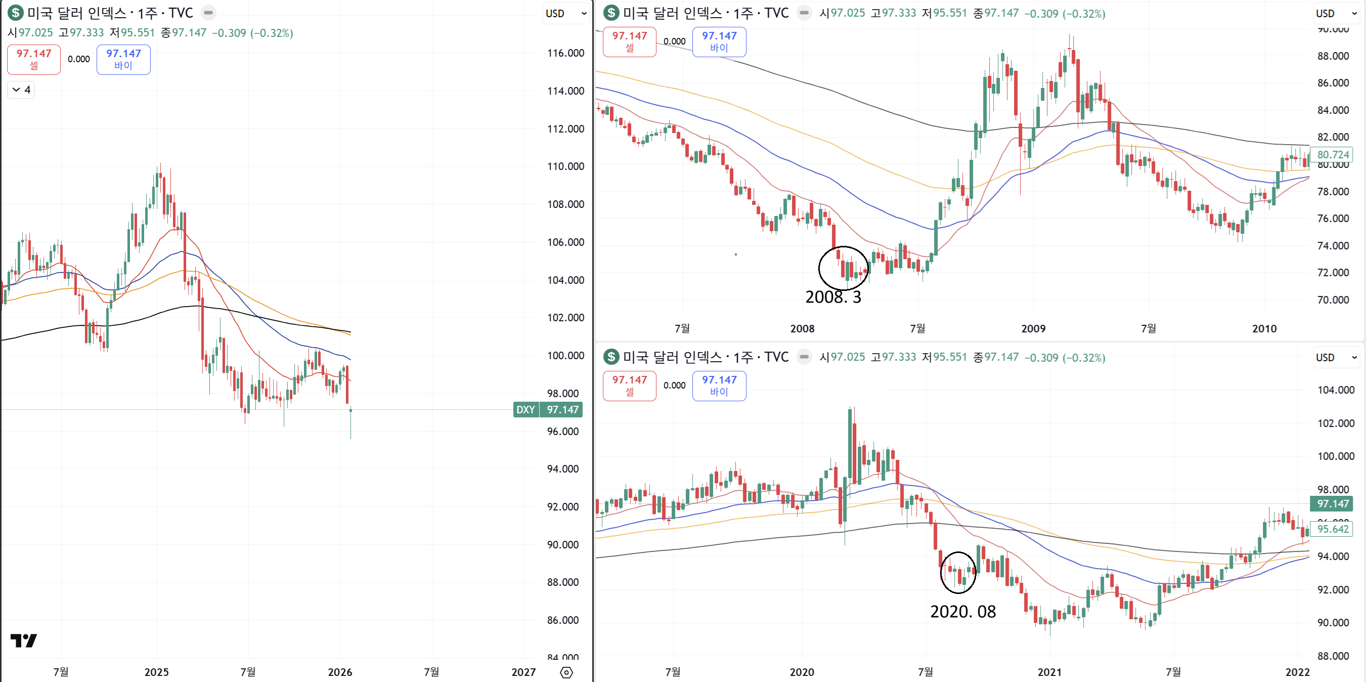 2026년 현재와 2008년 화폐의 변동성이 불안정한 상황인데