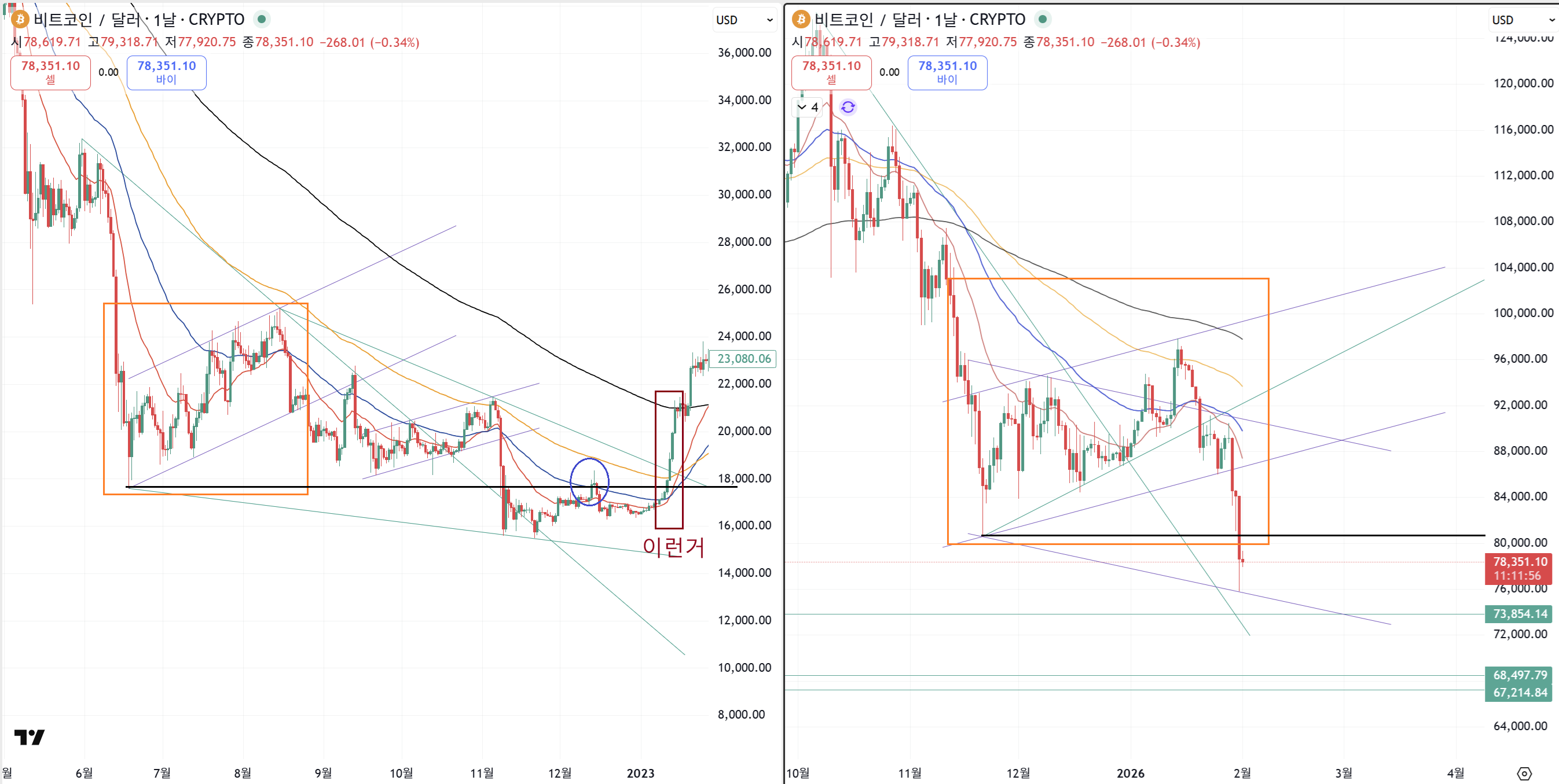 멀리 못가서 또 한번 크게 무너지는 패턴도 생각할 수 있지만