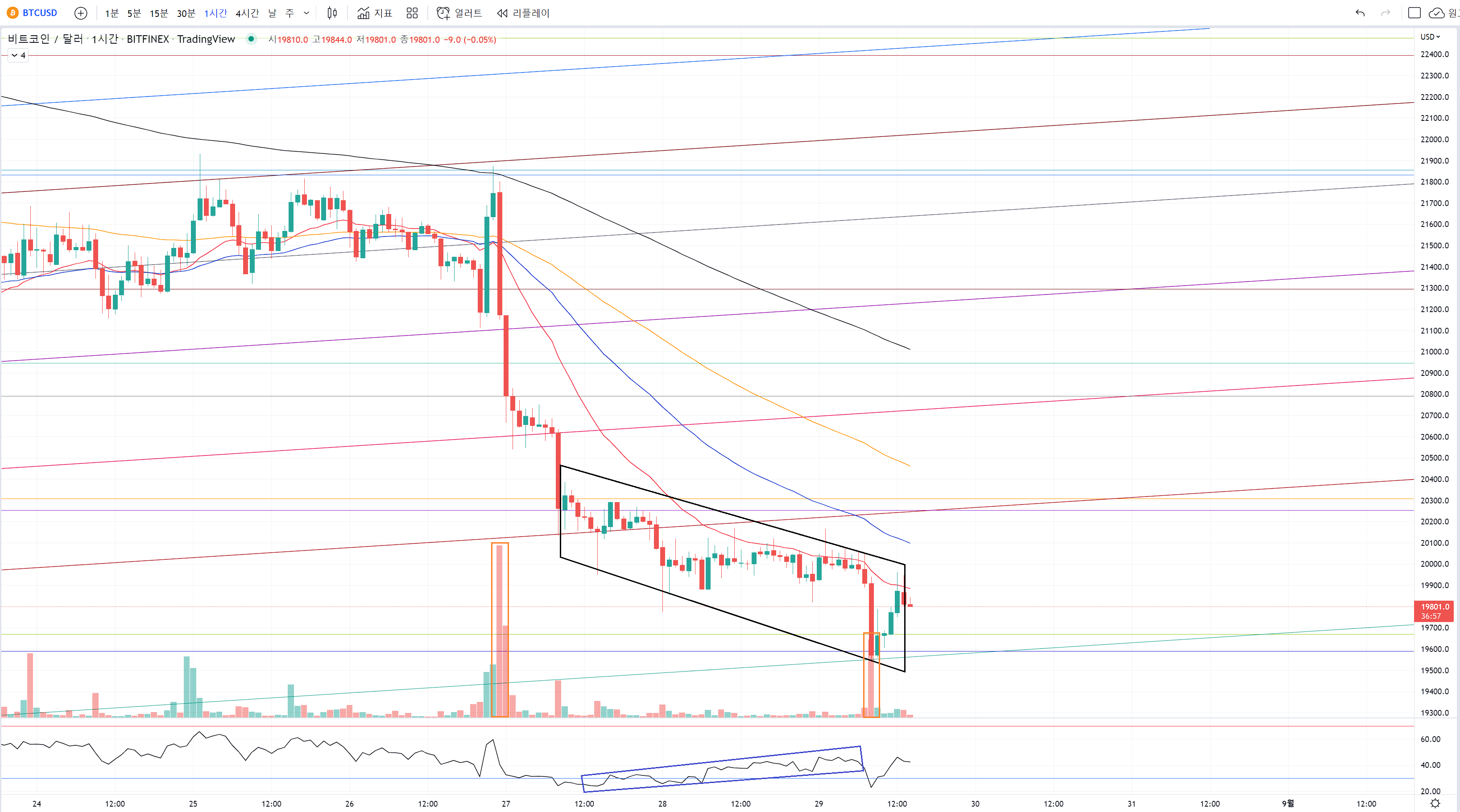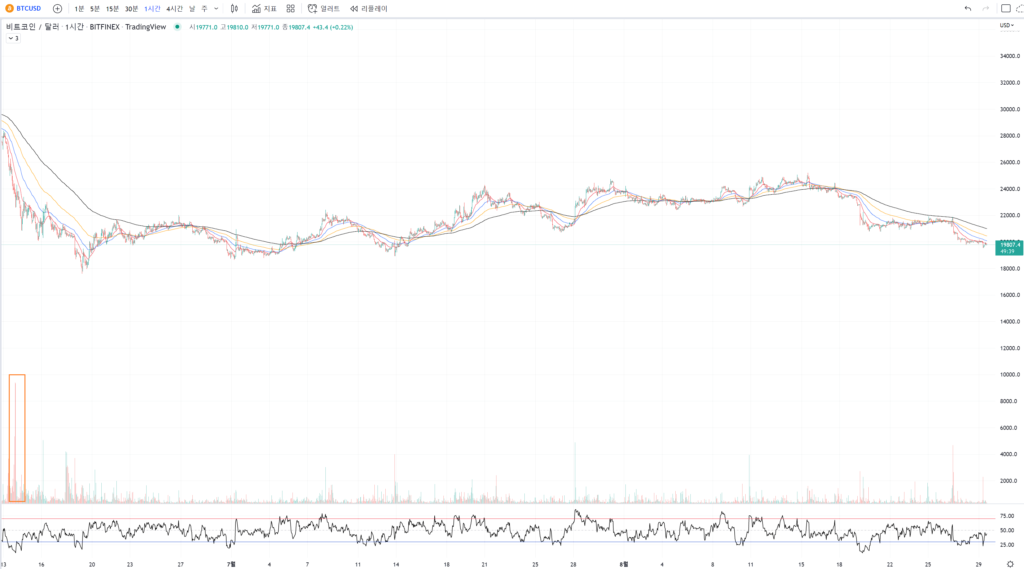 그러면서 rsi 관리는 제대로 못 해줘서 현재는 20000 아래에 자리잡았습니다.