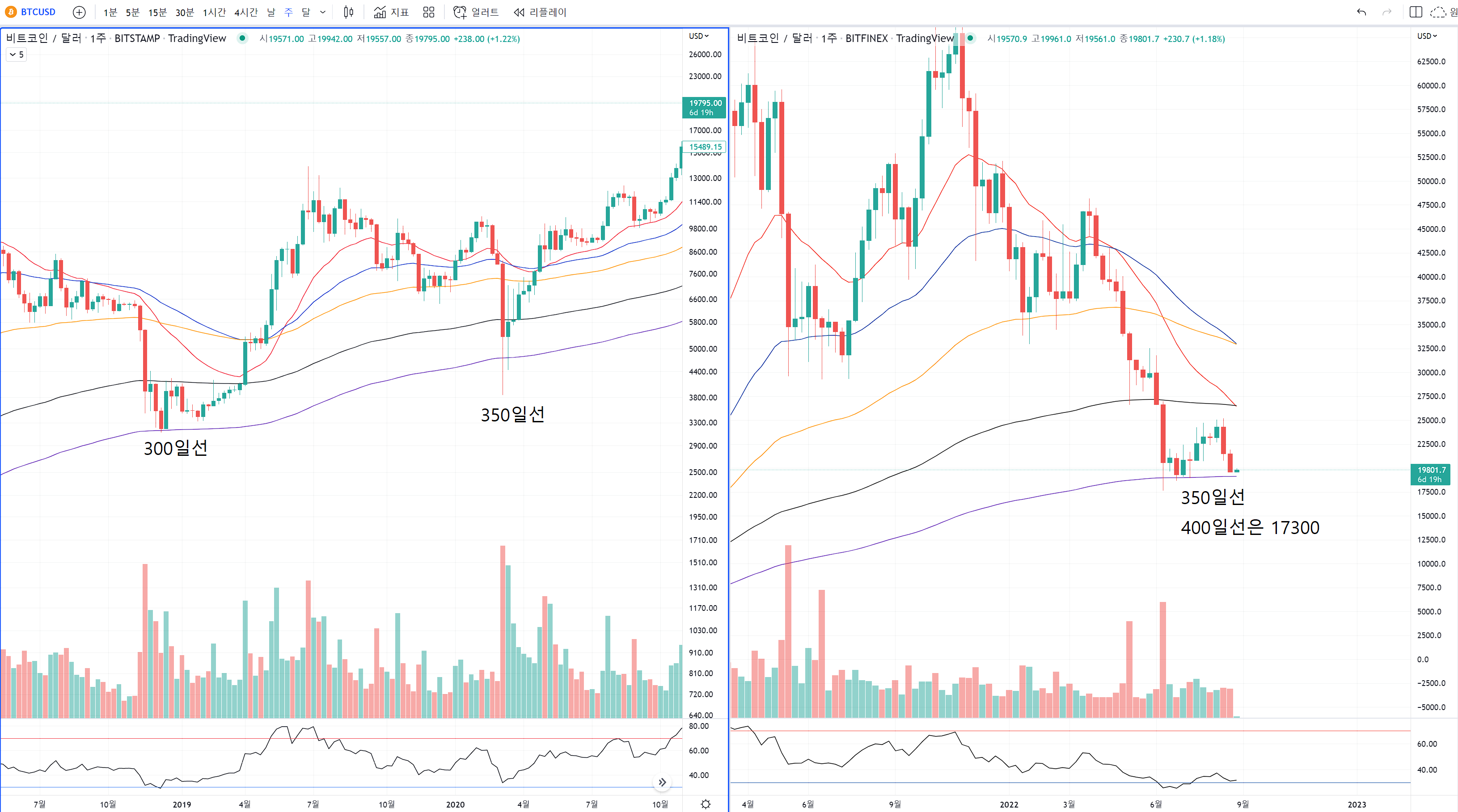 비트코인의 주봉 400일선은 17300쯤 있습니다.