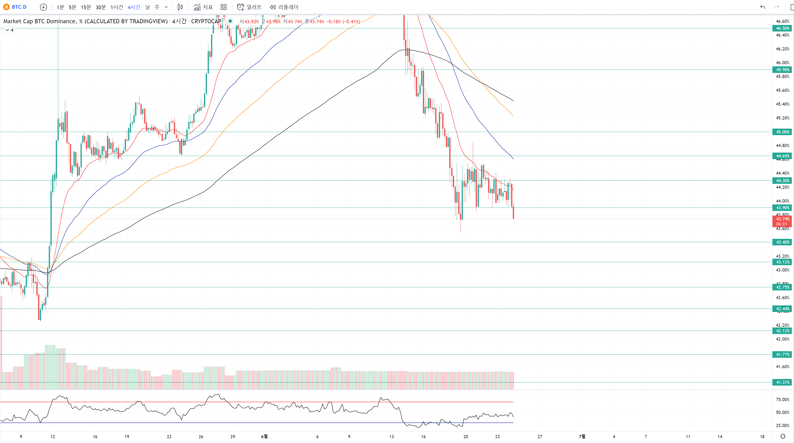도미넌스 하락세 이어가는게 알트코인에게 당연히 좋은 것도 있는데