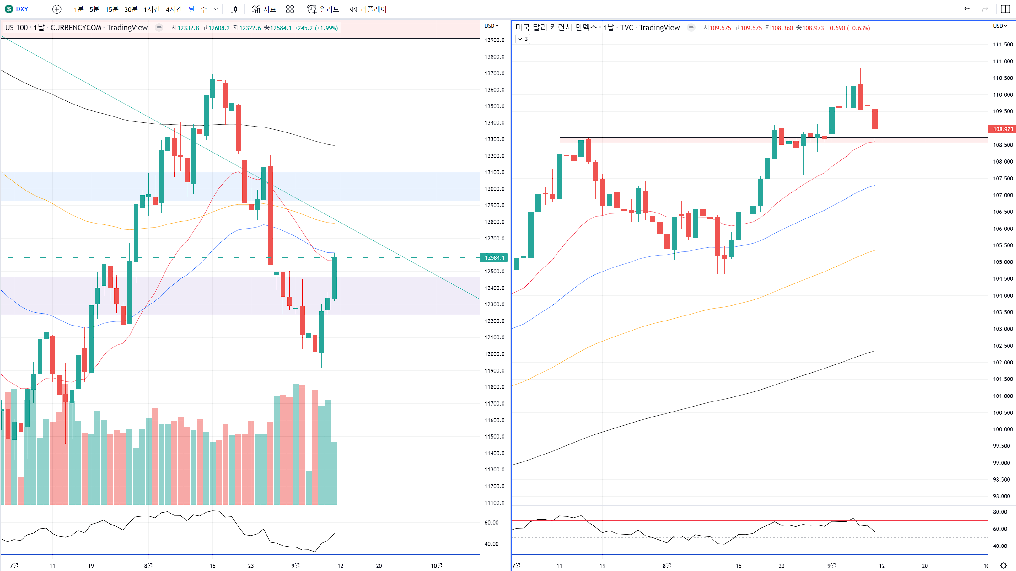 왼쪽이 나스닥 차트이고, 오른쪽은 달라 차트입니다.