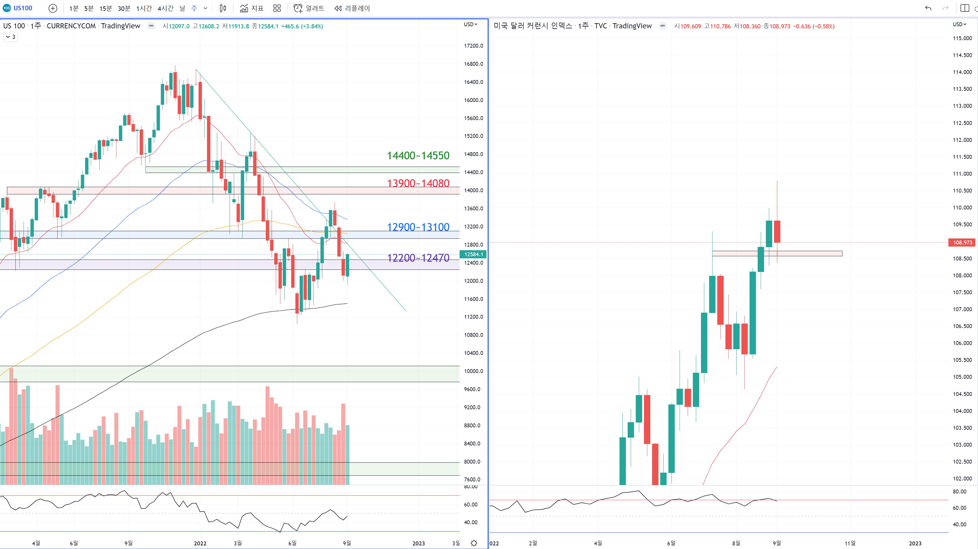 | 잘 무너진 달라. 추세선 돌파 못하는 나스닥. 도미넌스로 보는 알트코인 상황. (1) | 2022.09.13 |