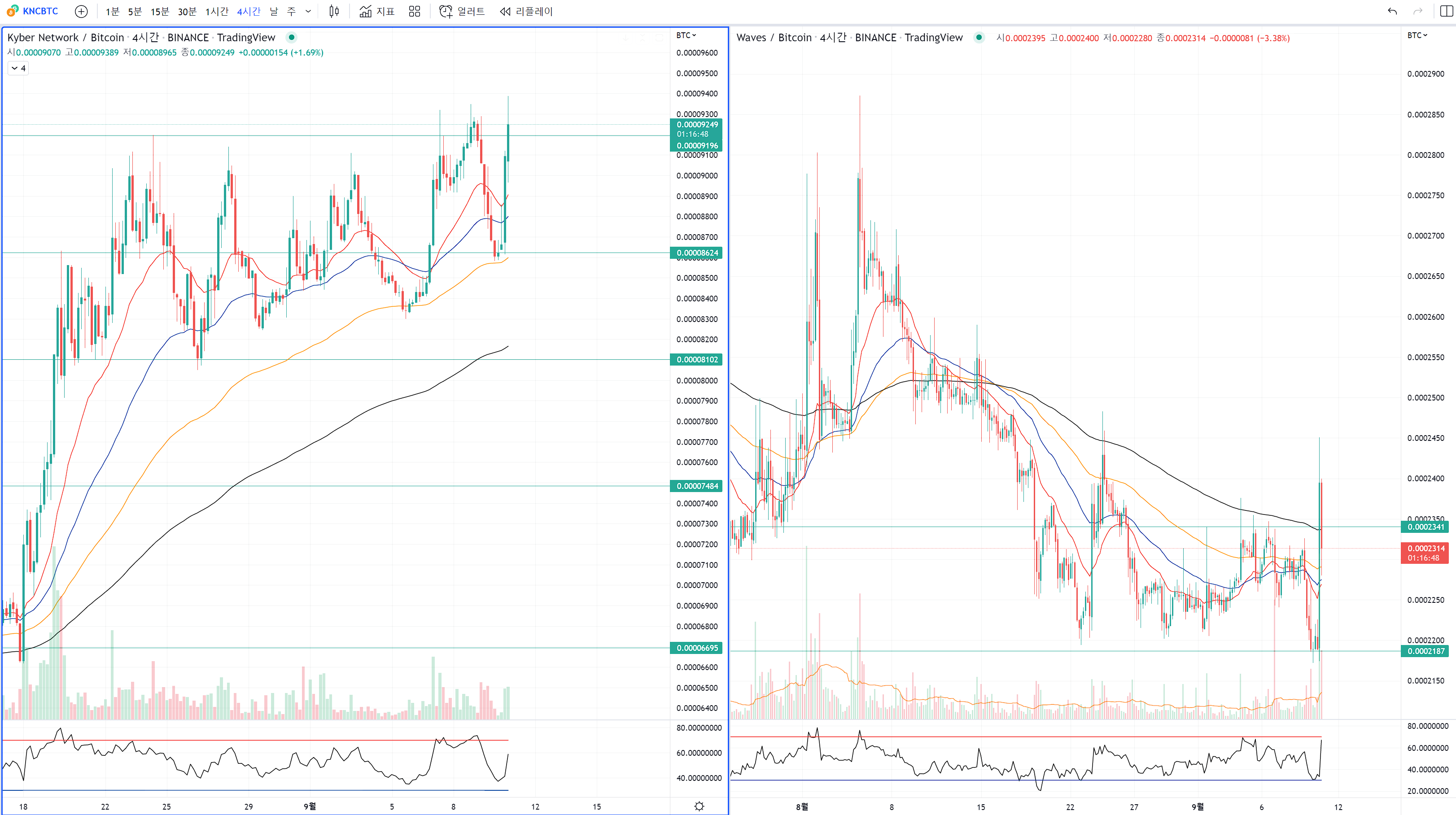알트코인쪽에서 단타를 한다면 아직 어느쪽도 터치하지 않은 현재가 매수로 진입하기에는 가장 좋습니다.
