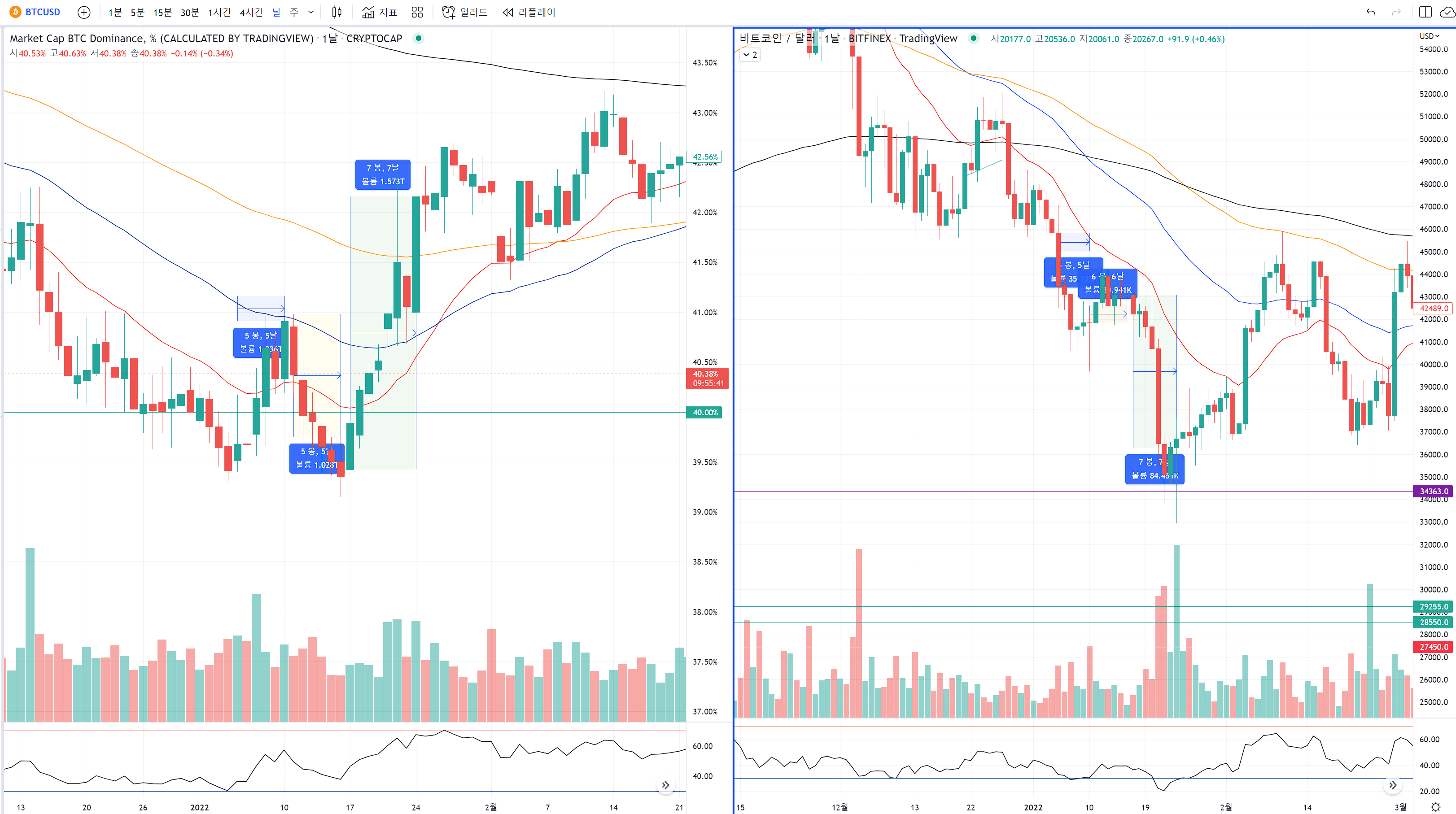 2022년 1월에도 도미넌스 40아래로 잠깐 내려온 적이 있었어요.