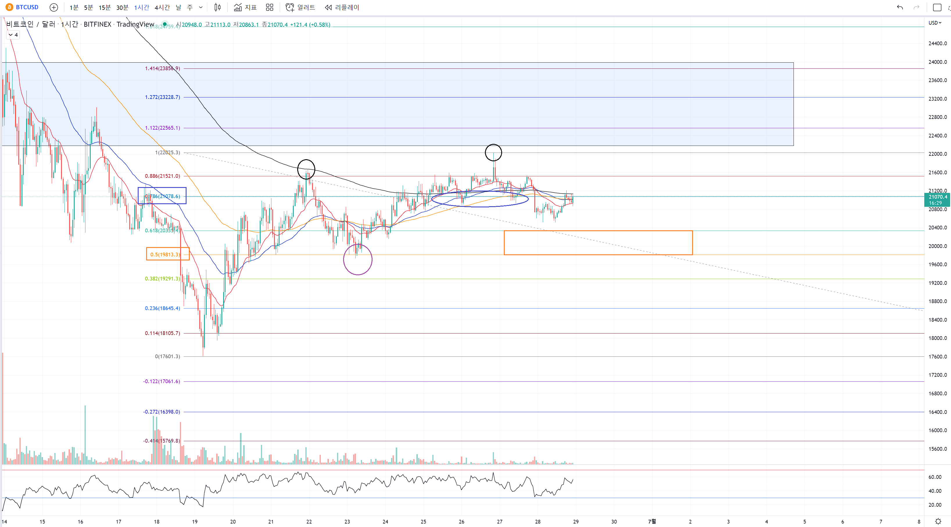 어쨌든 횡보중에도 1시간봉에서나마 23000을 목표로