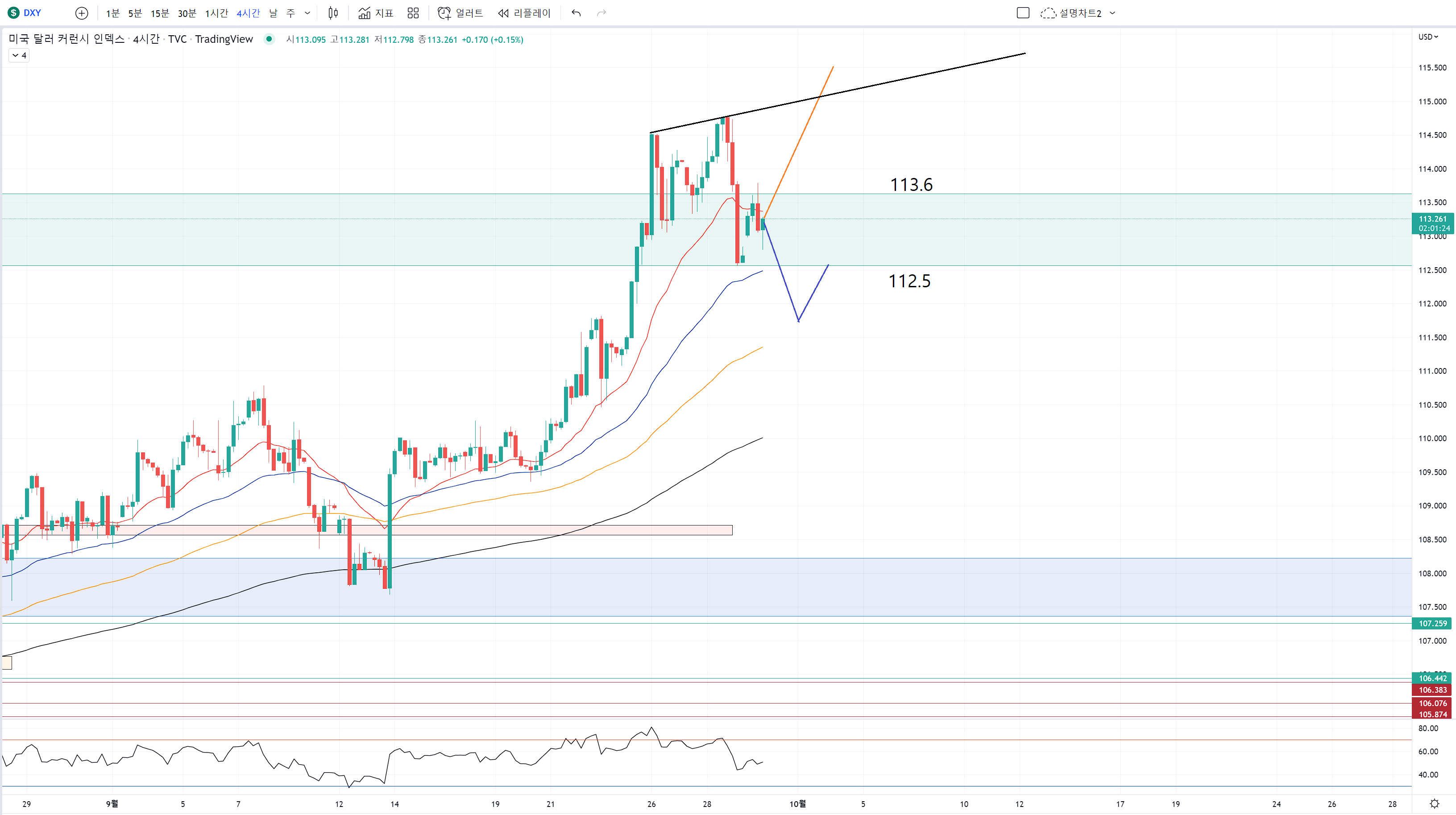 달라의 매수쪽은 113.6 위로만 밀어내면 상승 추세 받기 좋은 위치라서 오늘부터 매수로 밀어 붙여도 좋은 상황이예요.