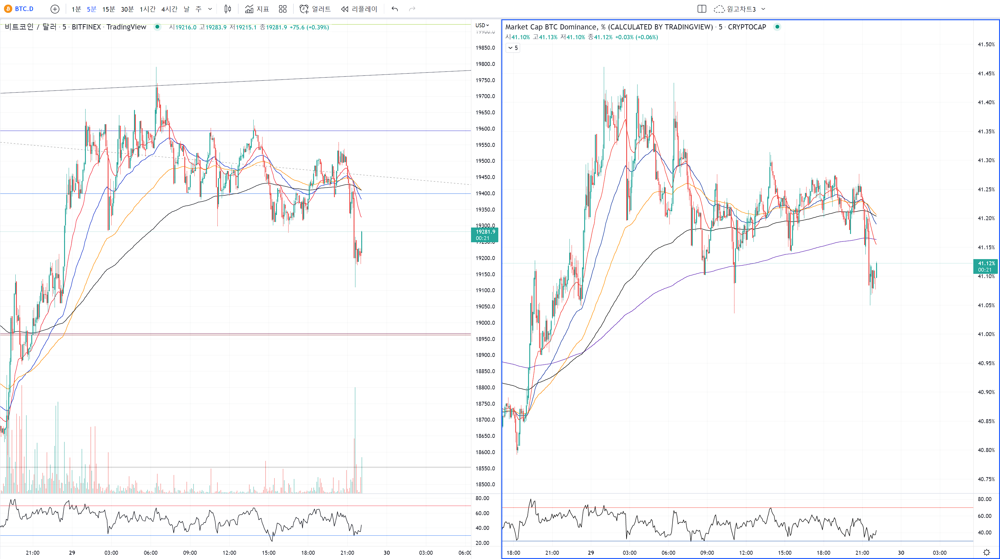 비트코인 상승에서도 도미넌스가 올라가되 41.7만 안 넘어가면 됩니다.