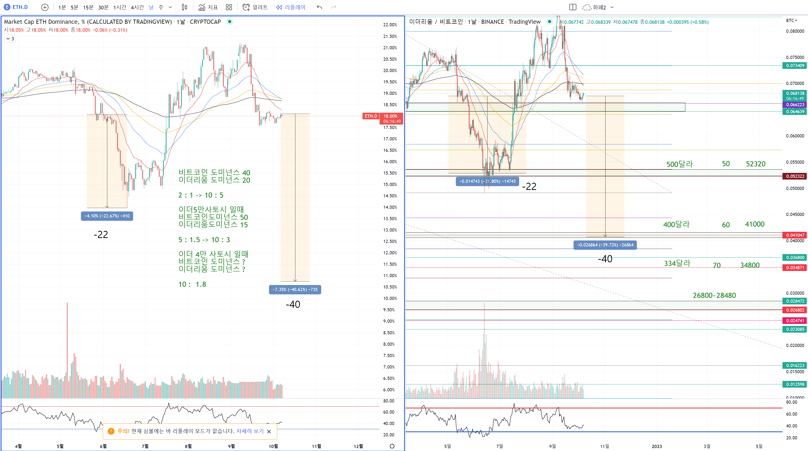 이더리움 도미넌스와 btc 활용하여 비트코인의 도미넌스 위치까지 알아내는데