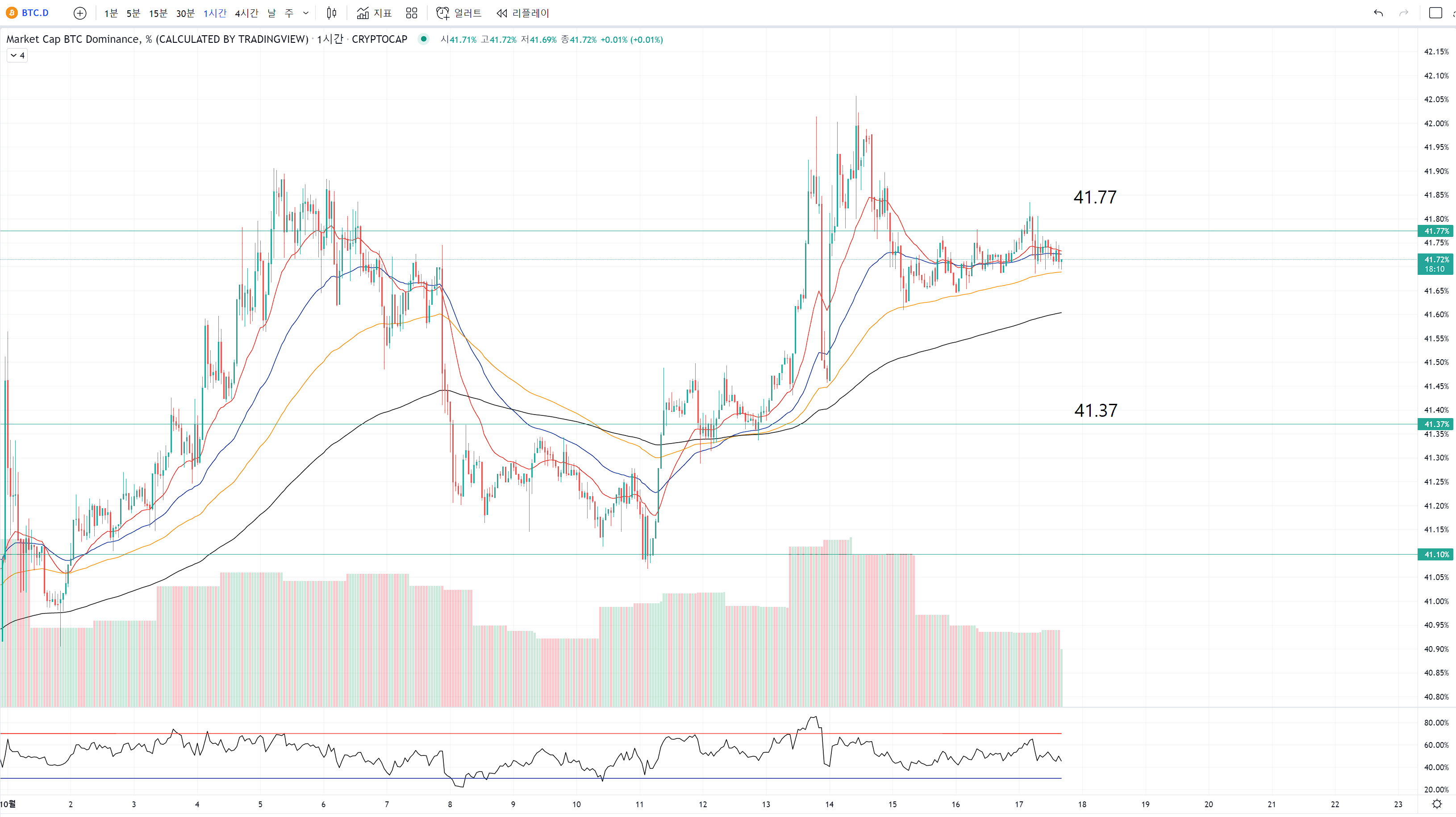 41.77에서는 눌리고 있다는 정도가 비트코인이 잠깐이라도 매수세가 나와줄때