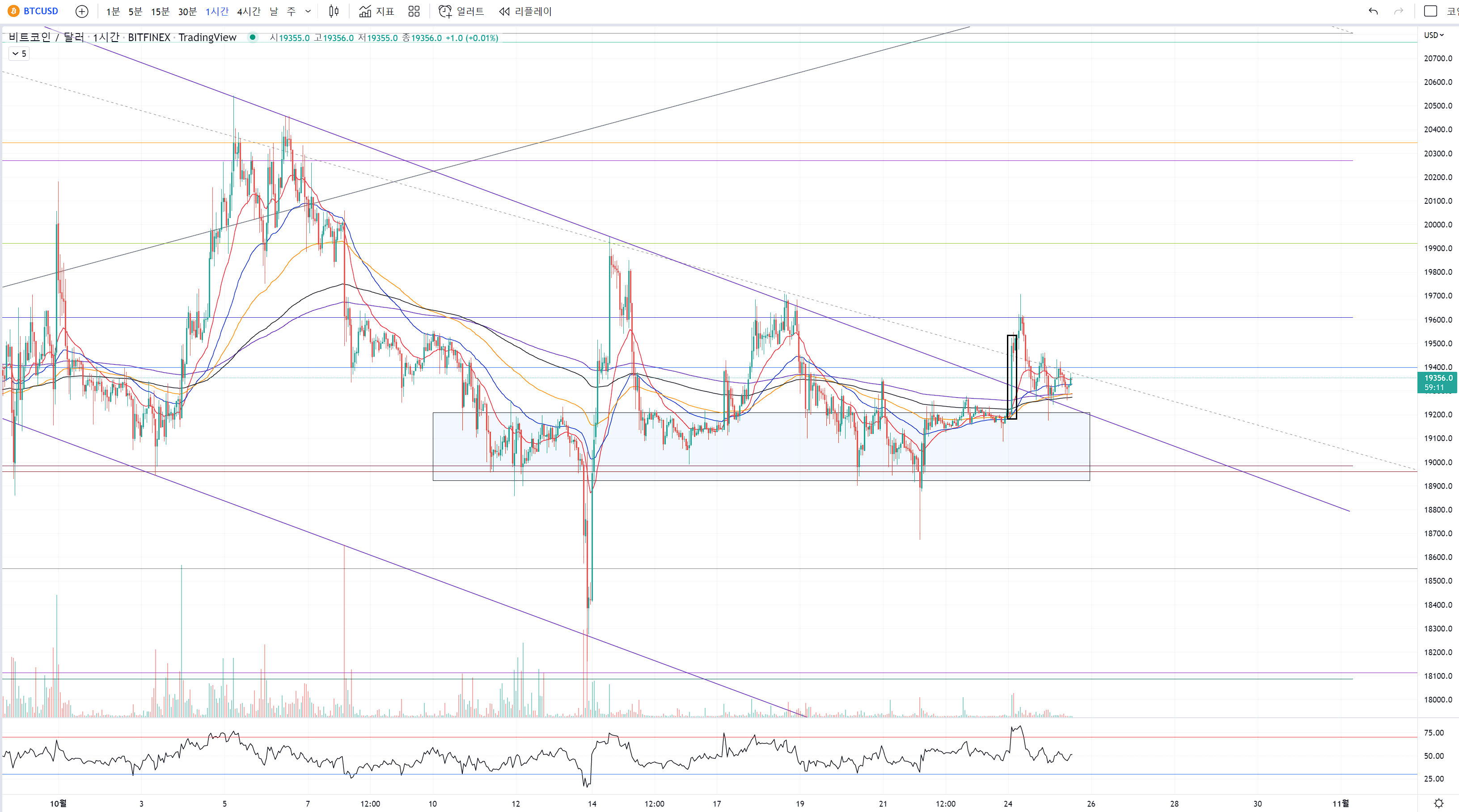 돌파하고 나서도 19400을 지켜주지 못한데다