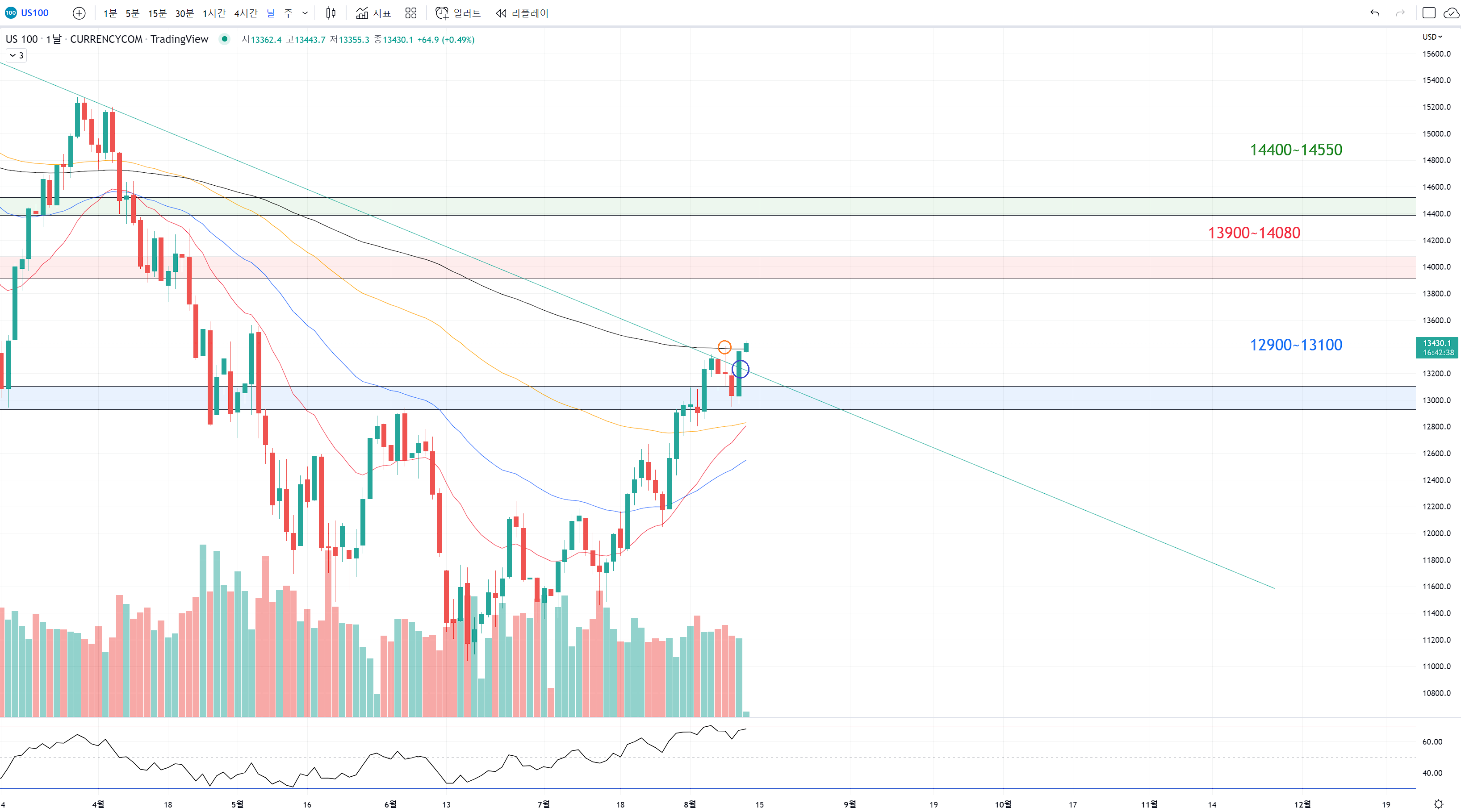 얼마전 하락에서 나스닥은 매물대 상단에서 지지를 해준 반면
